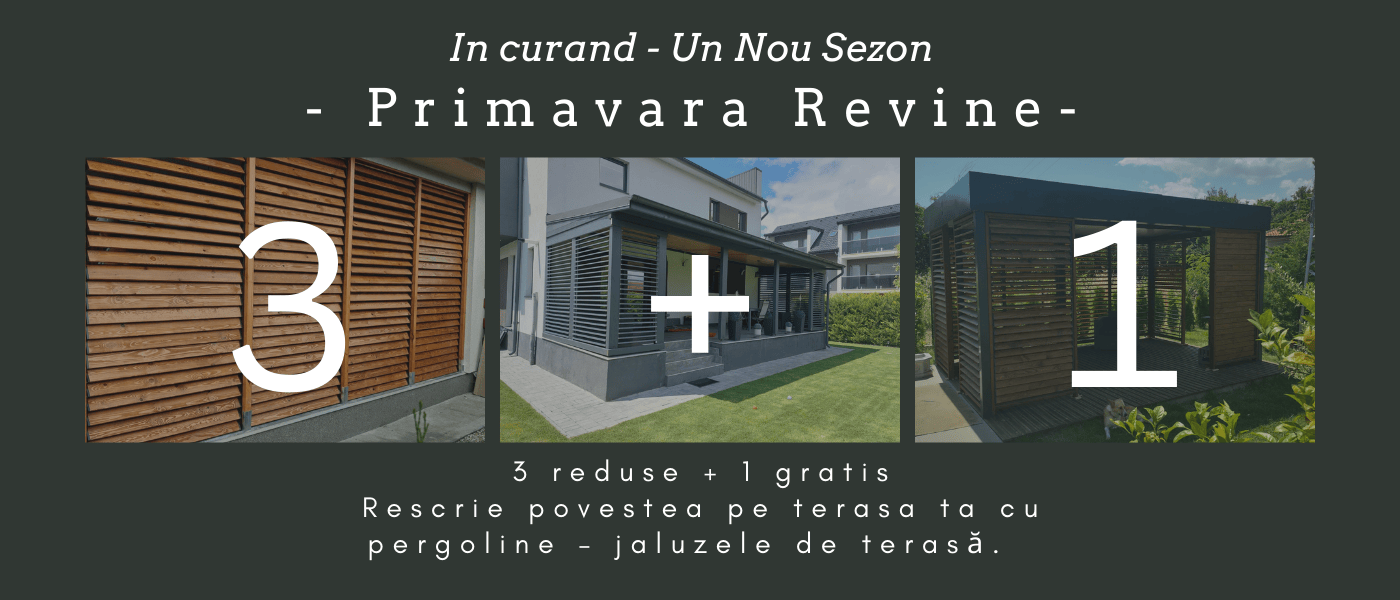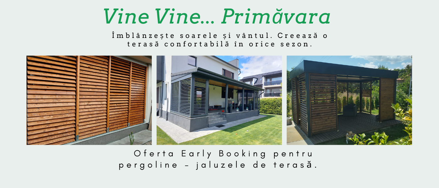 Închidere „la drept” perfectă, ce oferă atât protecție solară, cât și posibilitatea de a închide terasa în sezonul rece.