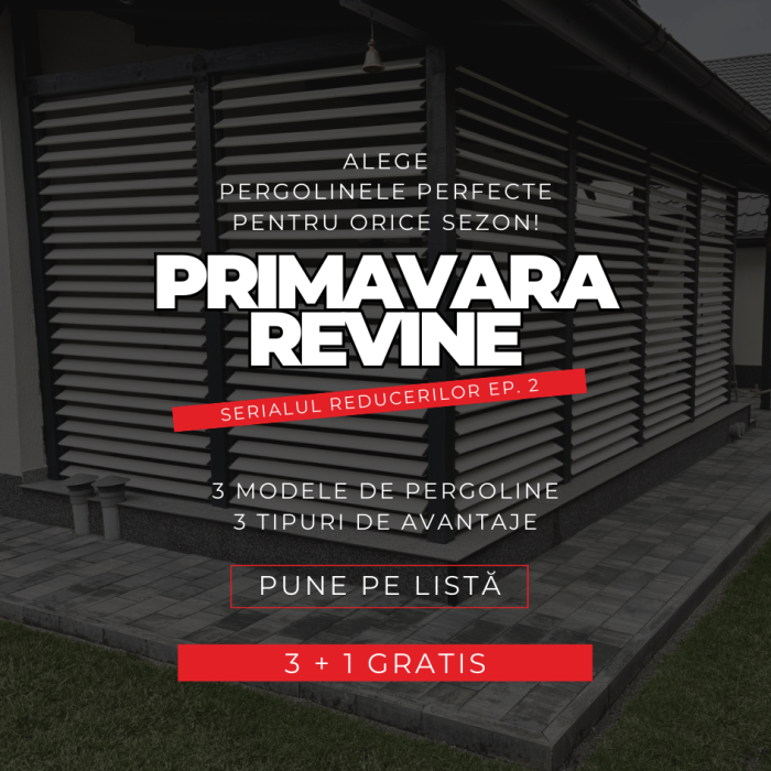 Creați-vă acum pergola visurilor dumneavoastră cu kiturile din gama Pergoline și bucurați-vă de confortul și estetica unui spațiu exterior bine protejat și stilizat!